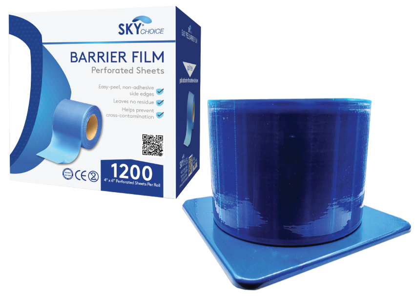 Sky Chice Barrier Film provides effective and affordable protection against cross-contamination and minimizes the risk of fomite-transmitted infection. This adhesive film is FDA 510(k) approved and meets or exceeds ASTM standards for bacterial and viral penetration resistance, material strength, and biocompatibility.
