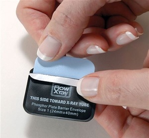 Is designed for super easy loading and removal of phosphor plates. The transparent side helps identify plate location. Once the tab is peeled off, the envelope practically seals itself. Center notch-cut allows for easy tear and plate removal. These envelopes are soft, with pliable vinyl rounded corners for greater patient comfort.