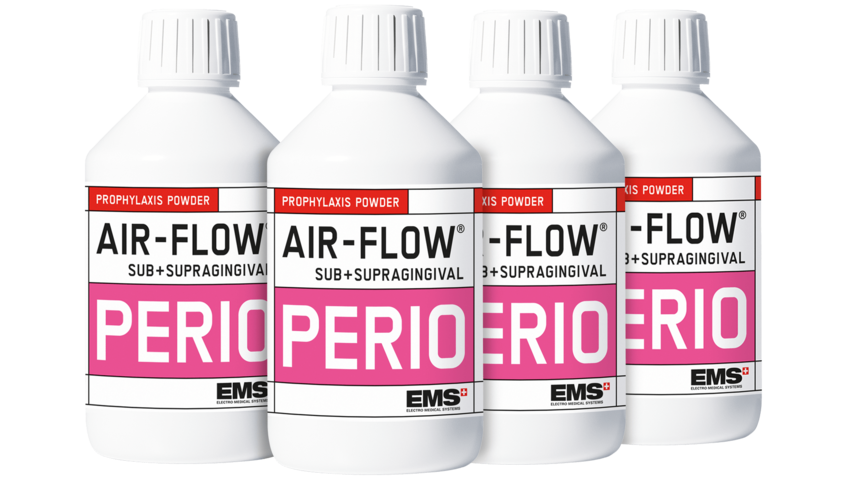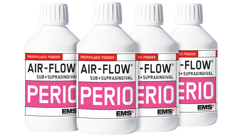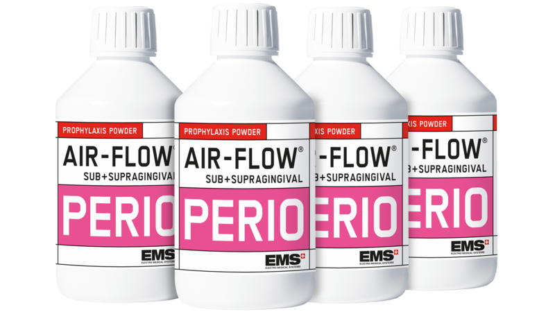The AIRFLOW PERIO powder marked the very beginning of subgingival AIRFLOW treatments. Thanks to its low specific-gravity and fine grain size of 25 microns, the AIRFLOW PERIO powder is delicate and respectful of soft-tissue, gingiva, palatal areas and natural tooth surfaces.