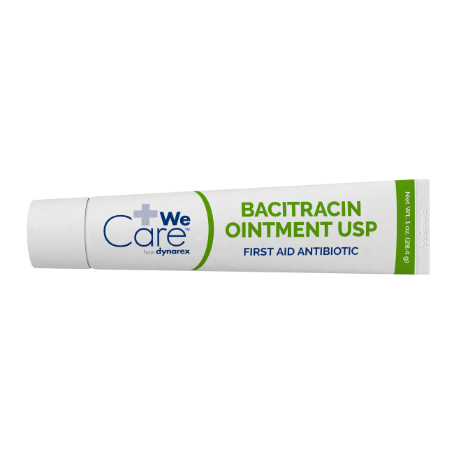 Dynarex Bacitracin Ointment helps prevent infection in minor cuts, scrapes and burns, as well as inhibits bacterial growth. Available in single use packets, tubes and jar sizes, making it convenient and ideal for first aid kits, clinics and home use.