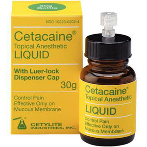 Cetacaine Liquid is available in both a 14g and 30 g bottle size and each bottle also includes a special luer-lock dispensing cap, used for filling luer-lock syringes with just amount of Cetacaine Liquid needed for treatment, reducing waste. For dental procedures, such as SRP, Cetacaine Liquid can be comfortably dispensed into periodontal pockets for up to 60 minutes of needle-free pain control. The viscous liquid is easy to control using Cetylite’s single-use Delivery Syringes and Tips (available separately) to a comfortably apply Cetacaine Liquid drop by drop into periodontal pockets, or by applying to the surface of mucous membrane with a cotton swab or microbrush. Cetacaine’s three active ingredient formula has been actively prescribed for professional use in dental and medical settings for more than 50 years, an assurance of its efficacy and Cetylite’s