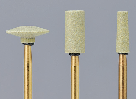 Vitrified-bonded diamond abrasive designed for contouring porcelains and ceramic copings. Dura-Green DIA provides enhanced performance with a smoother, chip-resistant cut verses silicon carbide or diamond burs. Densely packed diamonds are embedded throughout (from the surface to the core) in a special glass binder offering extended cutting ability up to the last ounce of material.