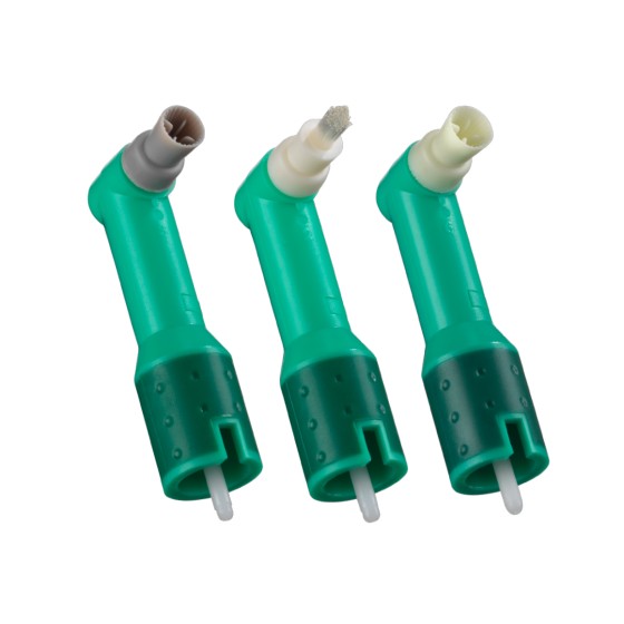 Latex-free prophy angles for stain removal with a durable drive mechanism that provides smooth and consistent performance.