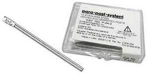 Patented split-shank parallel sided serrated threaded post, designed for cases where adequate coronal dentin exists; split shank absorbs the stresses of insertion during placement, instead of the root. Predictably provides maximum retention with minimal stress