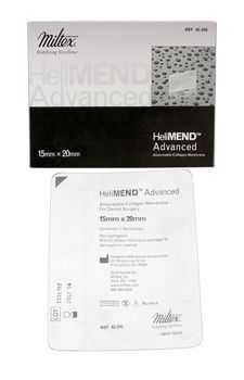 The HeliMend and HeliMend Advanced absorbable collagen membranes are made from purified bovine tendon. The product provides wound stabilization and creates space during guided tissue regeneration procedures where a longer absorption rate is desired. The HeliMend collagen membrane is absorbed in 4 to 8 weeks; while the HeliMendAdvanced collagen membrane is absorbed in 18 weeks. Each membrane is supplied sterile and in an easy to open package.