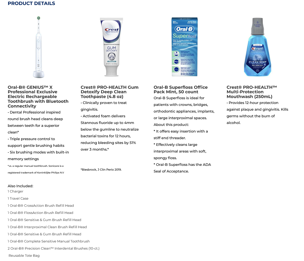A healthy implant starts with healthy gums. Reinforce good oral care habits that support healthy gums and implant success. This system has been especially designed for implant patients whether they are preparing for an implant or already have one in place. Crest + Oral-B have included a wide range of products in this system that have been specifically designed to help enable implant success.