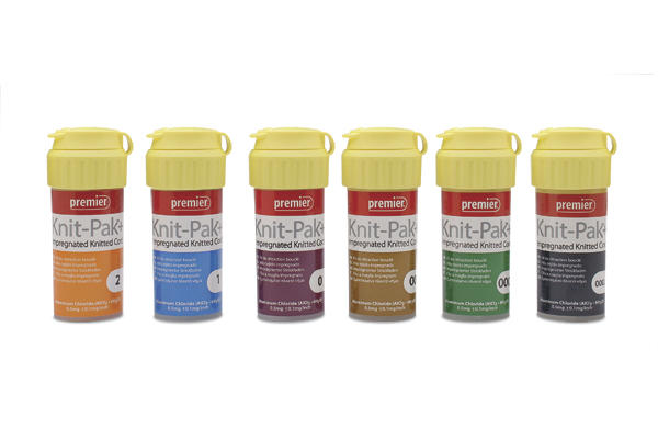 Knit-Pak™+ is an impregnated gingival retraction cord created from unique knitted microfibers. The fibers are distinguished by having very low moisture content with high durability and retention properties. These attributes create a dental gingival retraction cord with superior absorbency and a fray resistant pliable structure.