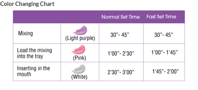 The color change of Kromatica alginate offers a visual guide for consistent impression making. The strength and physical characteristics of Kromatica help to assure an easy to mix material that produces a surface of smoothness. Kromatica alginate is available in fast set and regular set.
