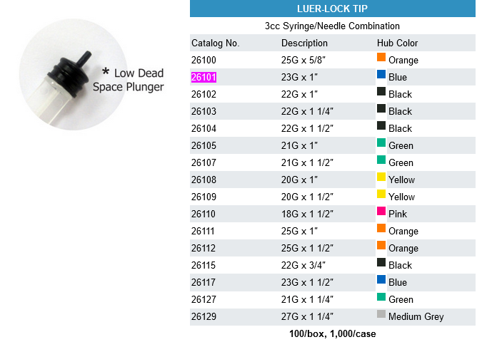Hypo. Syr. 3cc w/25ga x 5/8" needle (100 (Crosstex)