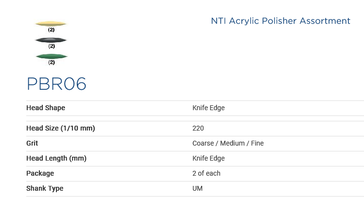 Green: coarse pre-polish, suitable also for soft acrylics.