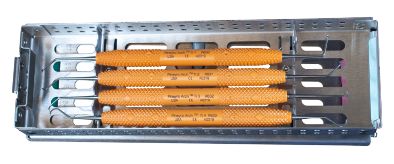 The Pineyro Arch™ Kit allows all hygienists to treat full fixed hybrid patients without removal of prosthesis. It’s the first instrument set of its kind designed for the implant debridement of full fixed implant restorations.