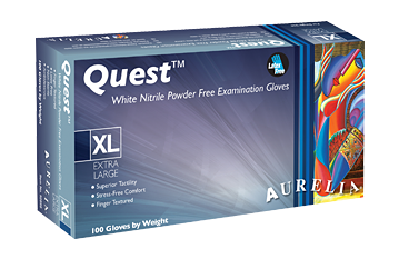 Aurelia ® Quest ™White Nitrile Powder Free Examination Gloves are made from 100% Nitrile. This New Generation Nitrile gloves are super soft & lightweight which contour to your hands for superior comfort. Each batch of gloves are air tested to detect pinholes. Aurelia gloves conform and are tested to the highest international standards.
