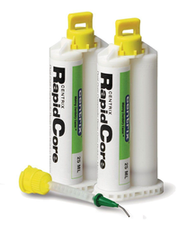Complete depth of cure, without light activation, in only two minutes. Enables strong core buildups that extend deep into the canal. Simply inject RapidCore through the exclusive Automix NeedleTube® and you are ready to cut the prep in two minutes. RapidCore’s advanced thixotropic formula flows smoothly through the needle yet will not slump, making core forms and matrix bands unnecessary. Achieve high bond strength when used with a compatible bonding agent such as Connexio®. Made in the USA.