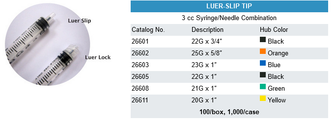 3cc Syringe - Needle Combination - Luer-Slip Tip